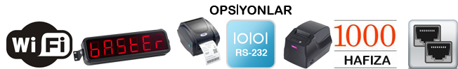 İsteğe bağlı olarak ek seçenekler. Wifi Haberleşme Harici büyük gösterge RS-232 Bağlantısı Ethernet bağlantısı 125 adet fiyat belleği Harici Mini Termal yazıcı Harici Termal yacızı 32 adet e kadar teraziler group olarak bilgisayara bağlanabilir. 1000 hafıza